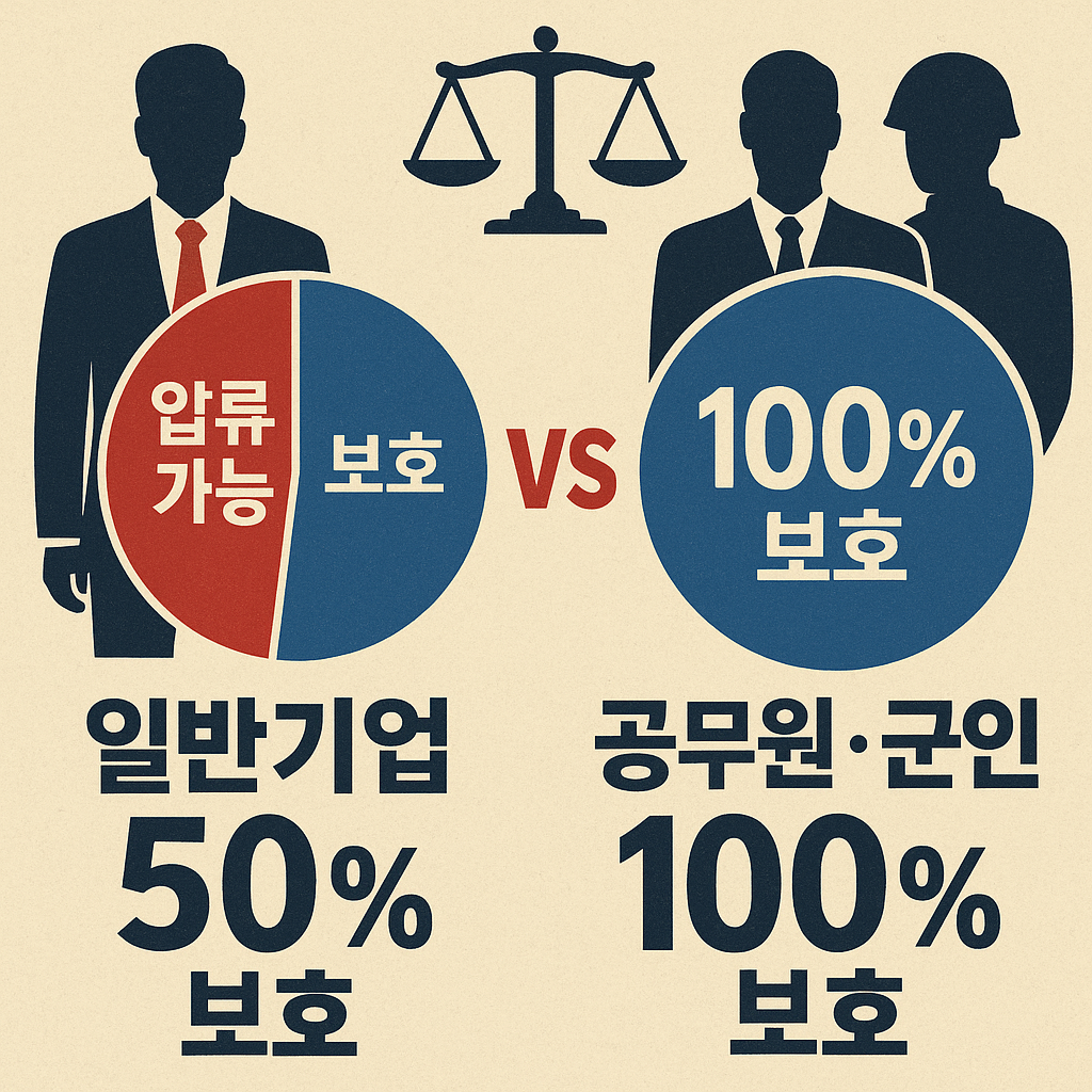 | 일반 기업 퇴직금 | 일부 가능 | 50% 보호 |